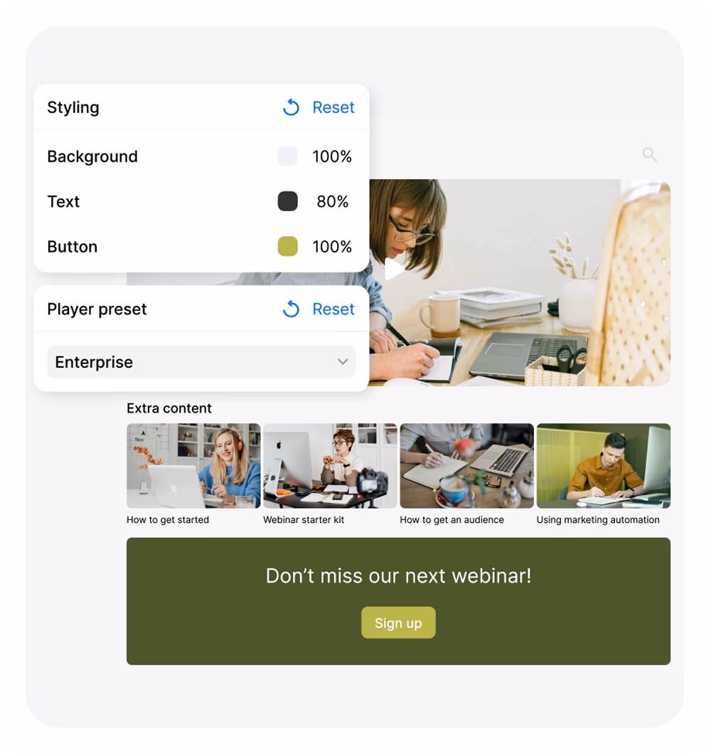 Stream leadership updates, earnings calls, and internal events with full control, security, and branding.